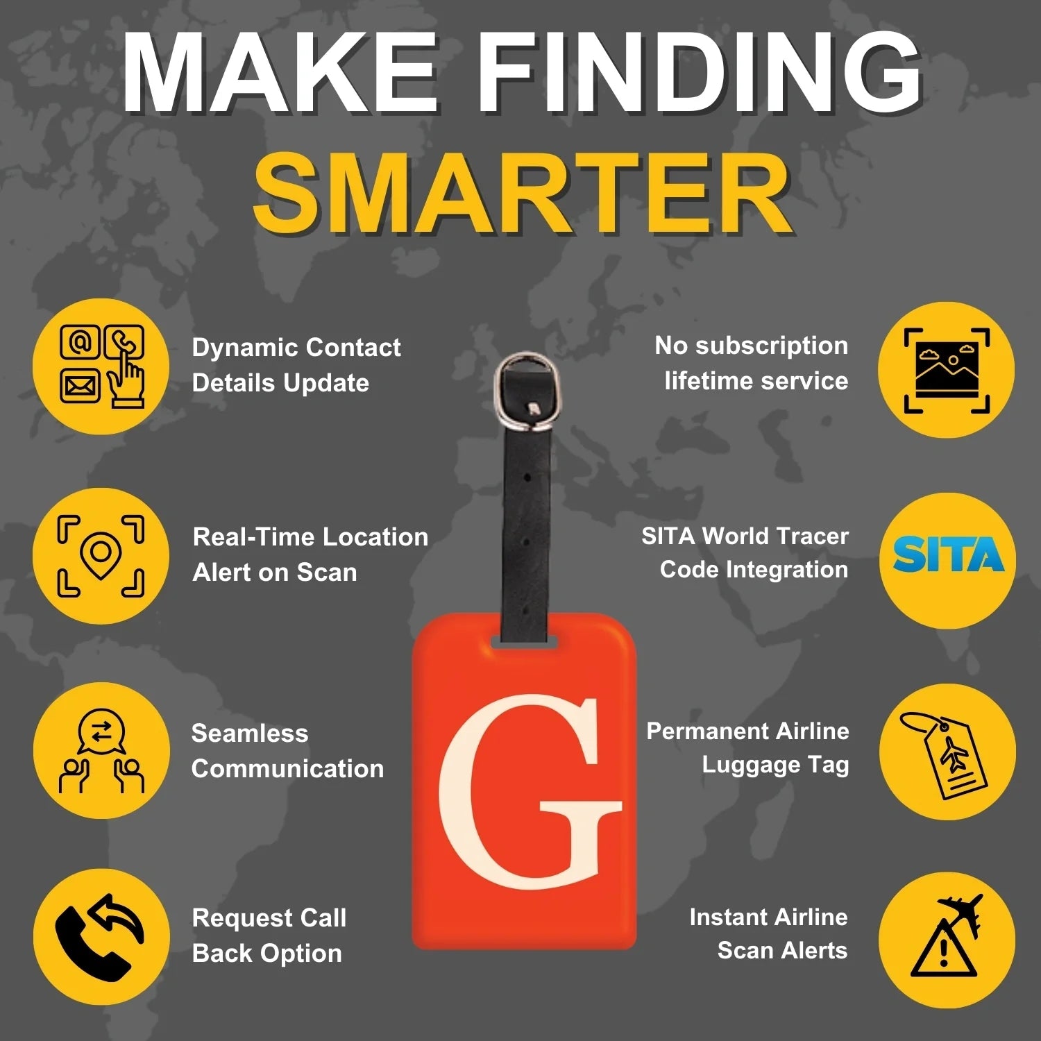 - [Stay in Control of your bags] Update your contact details online anytime, even after your bag is lost, for peace of mind. Relevant both in and outside airline systems, perfect for local travels, and smarter than a name tag - all with no subscription fees!